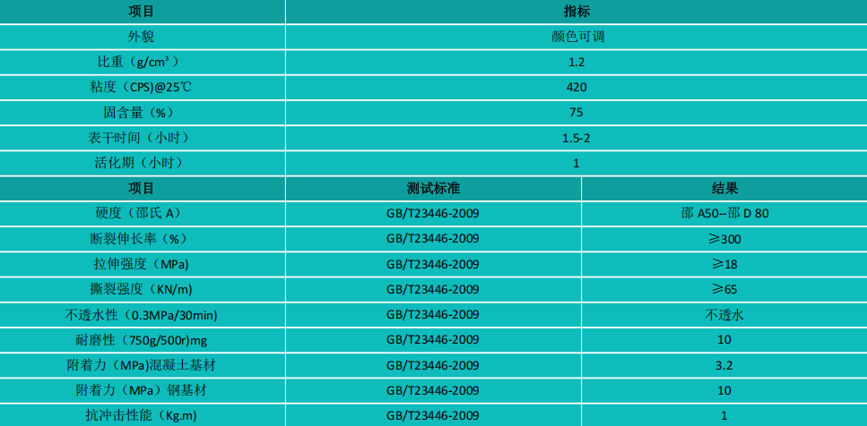 单组分脂肪族聚脲防腐防水防护涂层材料,与多种基材都具有优异的附着力。由于脂肪族预聚体独特的化学结构,该产品不但有卓越的高弹性、高强度、耐磨、抗撞击性能,而且耐腐蚀、耐候性能优异,长期户外使用不粉化,不变色,装饰效果好。